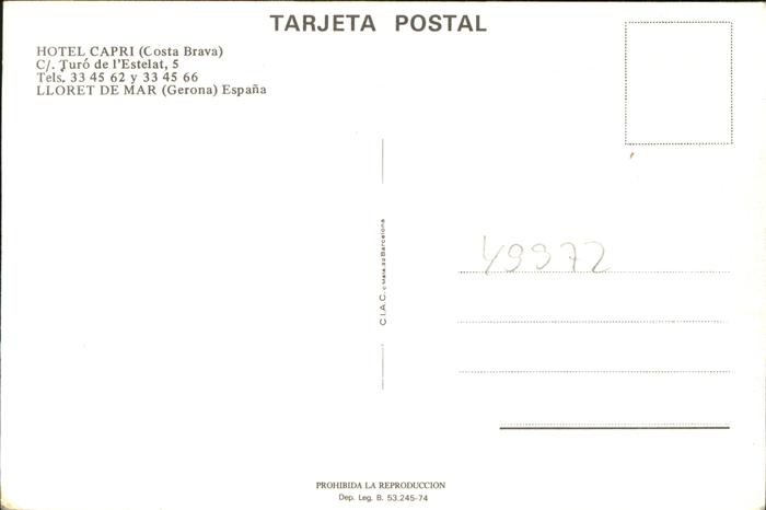 Lloret de Mar Hotel Capri postalisch nicht gelaufen Erhaltung siehe scans
