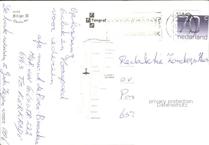 old postcard Lloret de Mar Hotel Felipe III postalisch gelaufen Erhaltung siehe scans