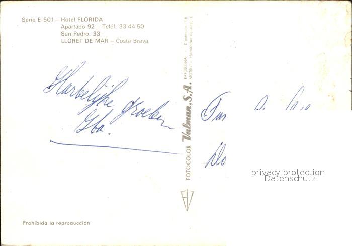 Lloret de Mar Hotel Florida postalisch nicht gelaufen Erhaltung siehe scans