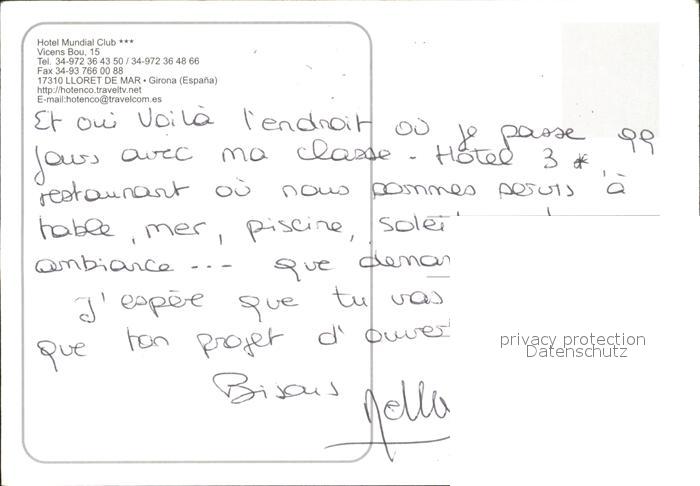 Lloret de Mar Hotel Mundial Club postalisch nicht gelaufen Erhaltung siehe scans