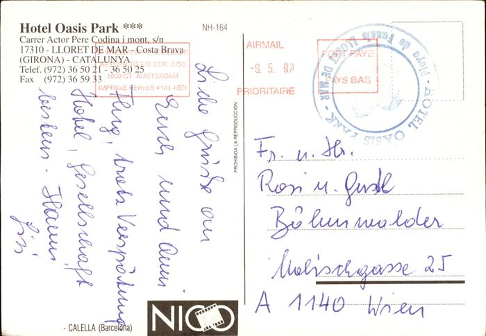 old postcard Lloret de Mar Hotel Oasis Park Swimming Pool Partie an der K?ste postalisch gelaufen Erhaltung siehe scans