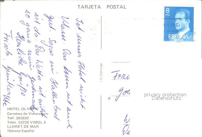 old postcard Lloret de Mar Hotel Olympic Swimming Pool postalisch gelaufen Erhaltung siehe scans