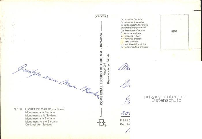 Lloret de Mar Monument a la Sardana postalisch nicht gelaufen Erhaltung siehe scans