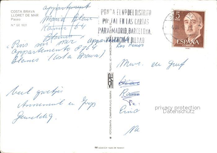 old postcard Lloret de Mar Paseo Promenade Palmen Strassencafes postalisch gelaufen Erhaltung siehe scans