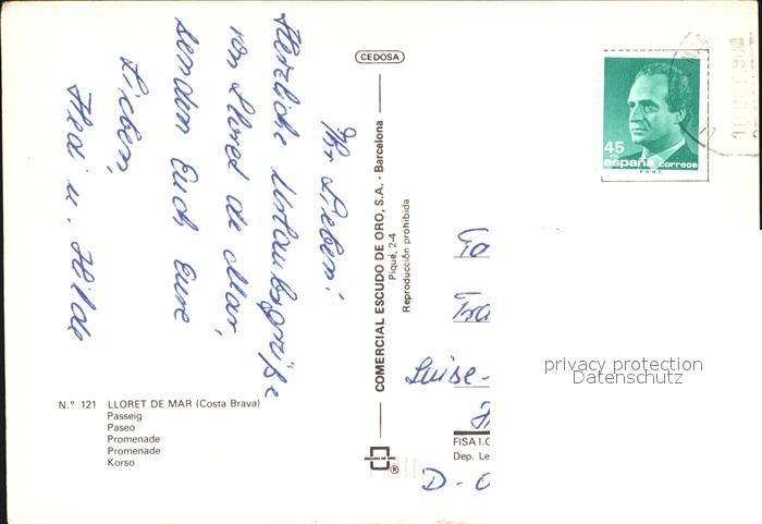 old postcard Lloret de Mar Paseo Promenade Palmen postalisch gelaufen Erhaltung siehe scans