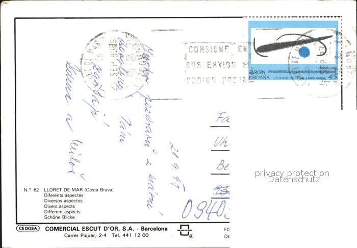 old postcard Lloret de Mar Strand Chateau Palmen Felsen postalisch gelaufen Erhaltung siehe scans
