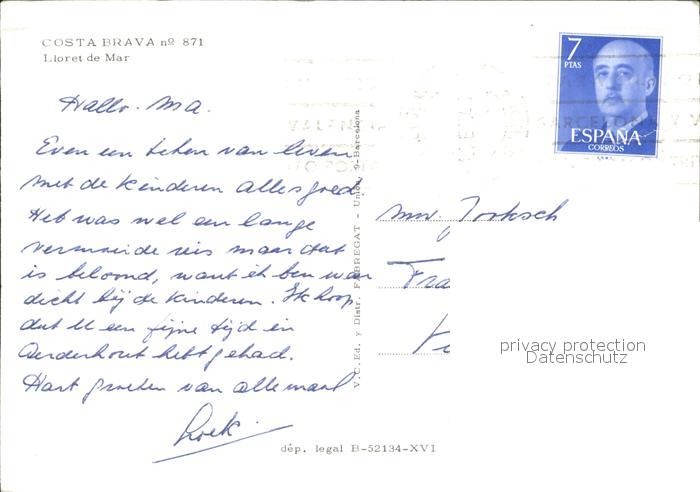 old postcard Lloret de Mar Strand Denkmal postalisch gelaufen Erhaltung siehe scans