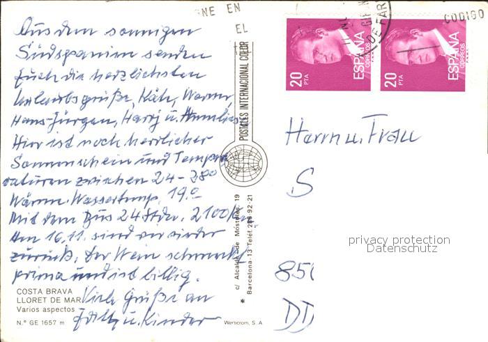 old postcard Lloret de Mar Strand Panorama postalisch gelaufen Erhaltung siehe scans