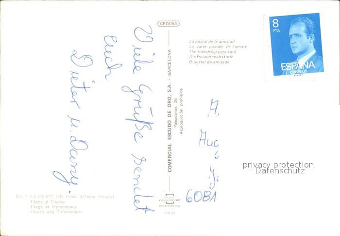 Lloret de Mar Strand Promenade postalisch nicht gelaufen Erhaltung siehe scans