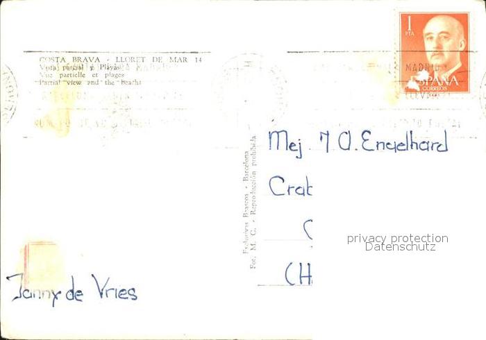 old postcard Lloret de Mar Strandpartie postalisch gelaufen Erhaltung siehe scans