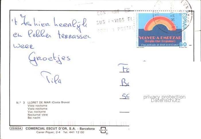 old postcard Lloret de Mar Vista nocturna postalisch gelaufen Erhaltung siehe scans