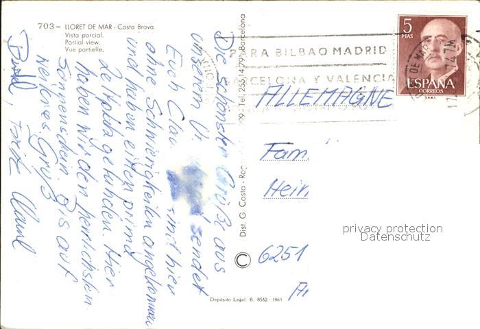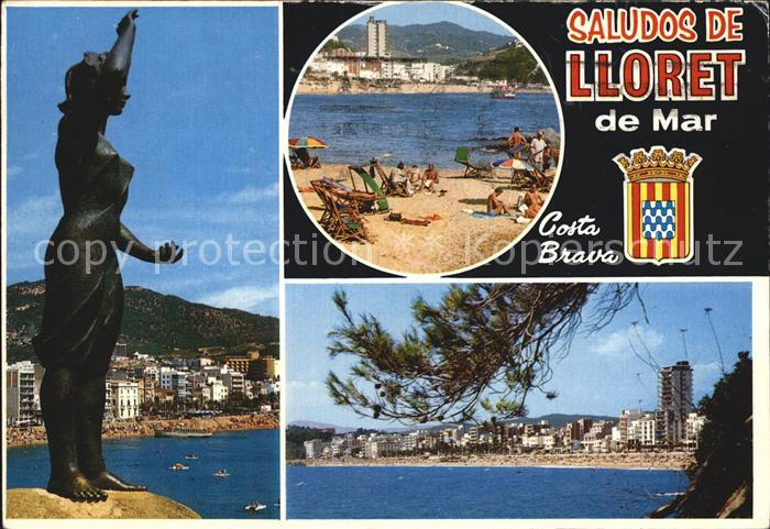 old postcard Lloret de Mar Vista parcial Statue Strand Hotels postalisch gelaufen Erhaltung siehe scans