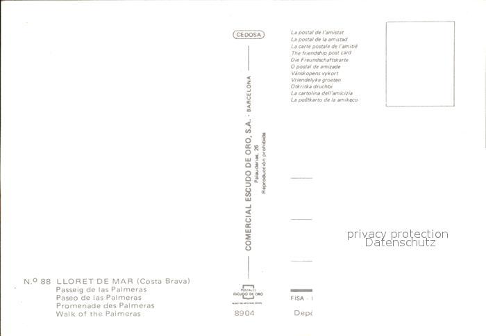 Lloret de Mar Walk of the Palmeras postalisch nicht gelaufen Erhaltung siehe scans