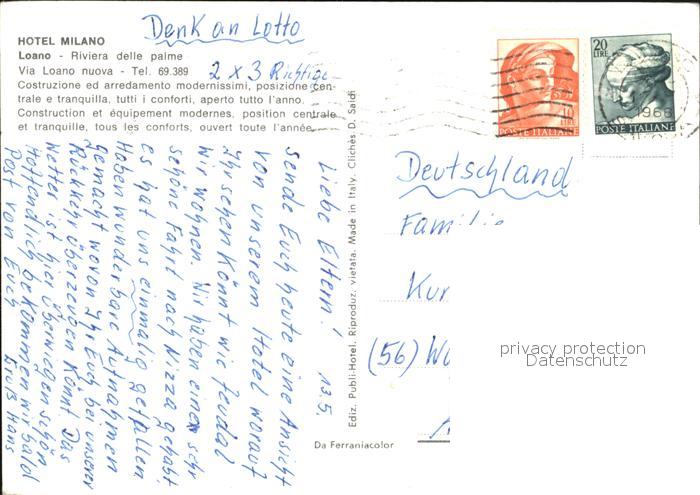 old postcard Loano Hotel Milano Speiseraum Fernsehraum Panorama postalisch gelaufen Erhaltung siehe scans