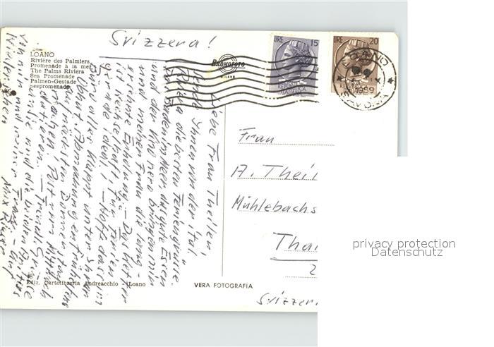 old postcard Loano Palmen Gestade Seepromenade postalisch gelaufen Erhaltung siehe scans