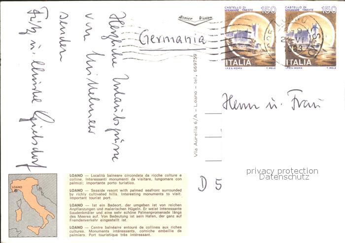 old postcard Loano Strand Palmen Meer postalisch gelaufen Erhaltung siehe scans