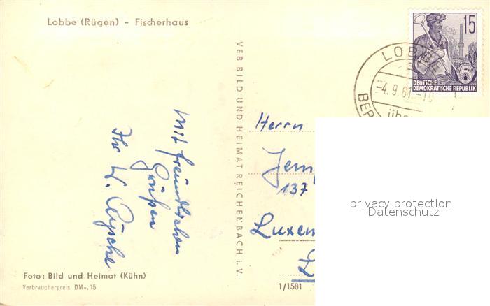 73032581 alte Postkarte Lobbe Middelhagen Ruegen Fischerhaus postalisch gelaufen Erhaltung siehe scans [KathaD81] KatCode: 11110013061023