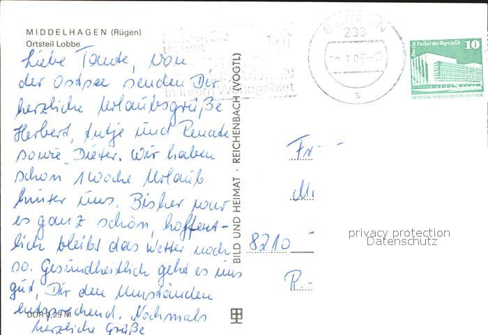 72407976 alte Postkarte Lobbe Middelhagen Ruegen Reetdachhaus Fischerboot Strand Campingplatz postalisch gelaufen Erhaltung siehe scans KatCode: 11110013061023