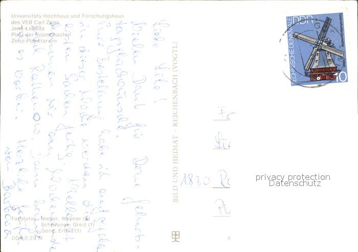 72285591 alte Postkarte Lobeda Universitaets Hochhaus Forschungshaus VEB Carl Zeiss Platz der Kosmonauten Zeiss Planetarium postalisch gelaufen Erhaltung siehe scans KatCode: 11110016053000