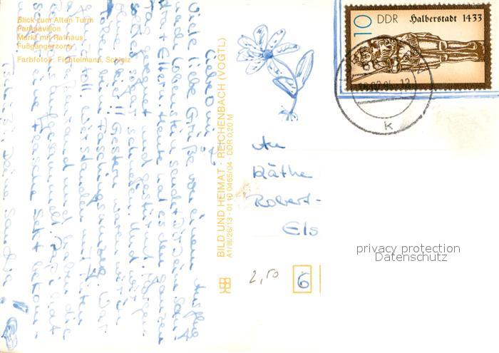 73649778 alte Postkarte Lobenstein Bad Blick zum Alten Turm Parkpavillon Markt Rathaus Fussgaengerzone postalisch gelaufen Erhaltung siehe scans [FriedD77] KatCode: 11110016075062