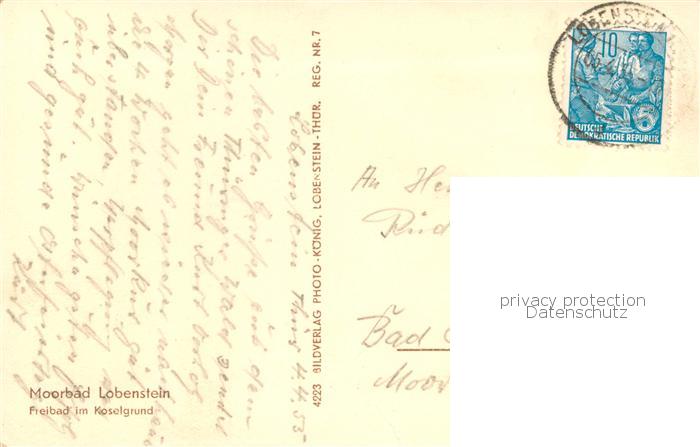 73764626 alte Postkarte Lobenstein Bad Freibad im Koselgrund postalisch gelaufen Erhaltung siehe scans [WerneD78] KatCode: 11110016075062