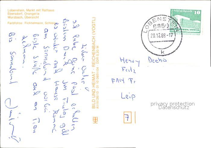 72461601 alte Postkarte Lobenstein Bad Markt Rathaus Ebersdorf Orangerie Wurzbach postalisch gelaufen Erhaltung siehe scans KatCode: 11110016075062