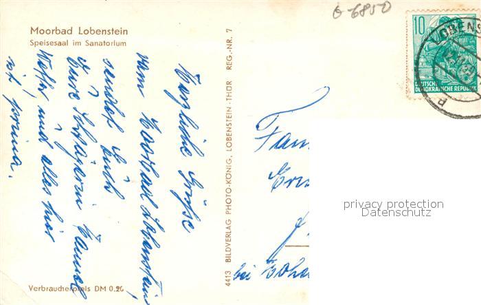 43352890 alte Postkarte Lobenstein Bad Speisesaal im Sanaorium postalisch gelaufen Erhaltung siehe scans [KathaD81] KatCode: 11110016075062