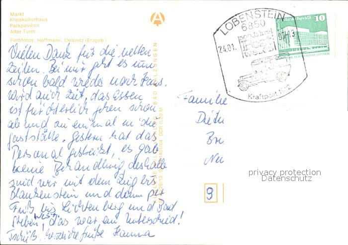 72382884 alte Postkarte Lobenstein Thueringen Bad Markt alter Turm Kulturhaus postalisch gelaufen Erhaltung siehe scans KatCode: 11110016075062