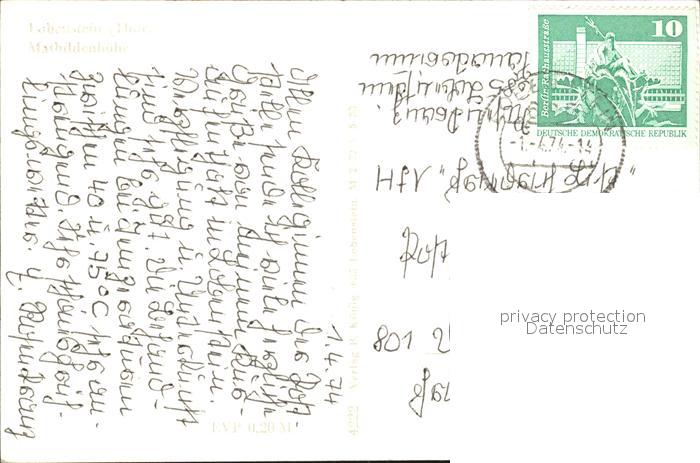 72401598 alte Postkarte Lobenstein Thueringen Bad Mathildenhoehe postalisch gelaufen Erhaltung siehe scans KatCode: 11110016075062