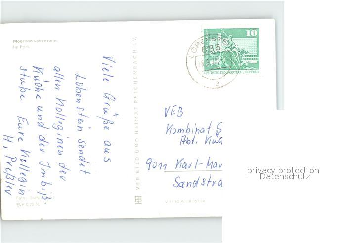 72384013 alte Postkarte Lobenstein Thueringen Bad Park postalisch gelaufen Erhaltung siehe scans KatCode: 11110016075062