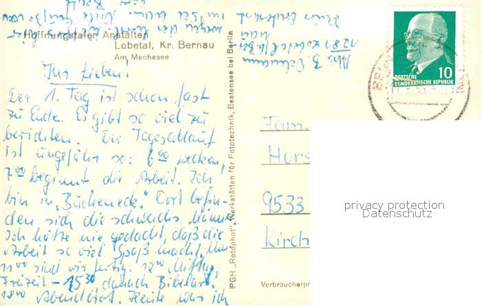72698648 alte Postkarte Lobetal Hoffnungstaler Anstalten am Mechensee postalisch gelaufen Erhaltung siehe scans [LiesaD40] KatCode: 11110012060020