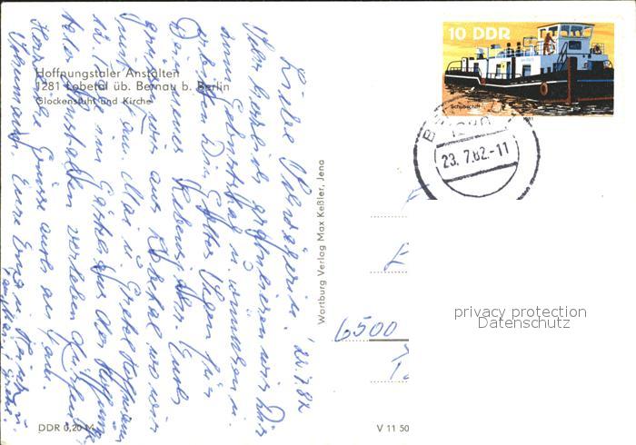 71986674 alte Postkarte Lobetal Hoffnungstaler Anstalten Glockenstuhl und Kirche postalisch gelaufen Erhaltung siehe scans KatCode: 11110012060020