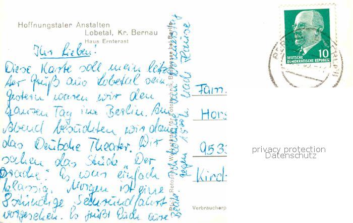 72698542 alte Postkarte Lobetal Hoffnungstaler Anstalten Haus Ernterast postalisch gelaufen Erhaltung siehe scans [LiesaD40] KatCode: 11110012060020