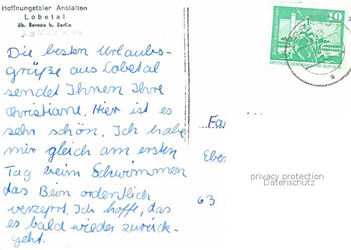 72635965 alte Postkarte Lobetal Uferpartie am Mechesee Schwaene Hoffnungstaler Anstalten postalisch gelaufen Erhaltung siehe scans [FriedD77] KatCode: 11110012060020