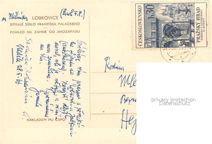 13551091 old postcard Lobkovice Byvale Sidlo Frantiska Palackeho Zamek od Jihozapadu postalisch gelaufen Erhaltung siehe scans [FriedD77] KatCode: 11520