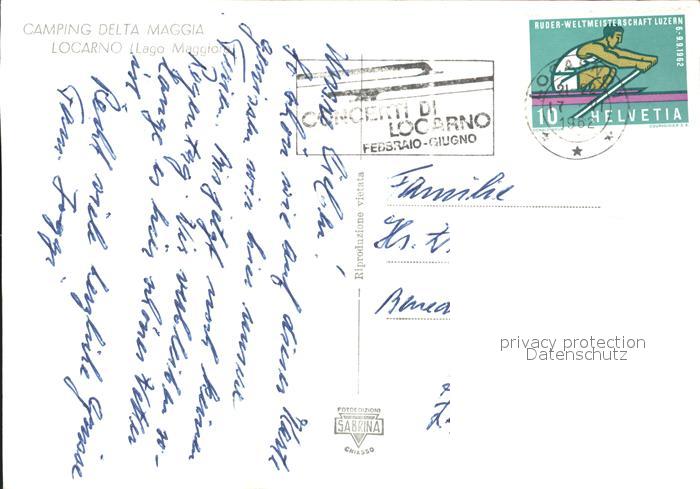 11645490 alte Postkarte Locarno TI Camping Delta Maggia postalisch gelaufen Erhaltung siehe scans KatCode: 11470210655962