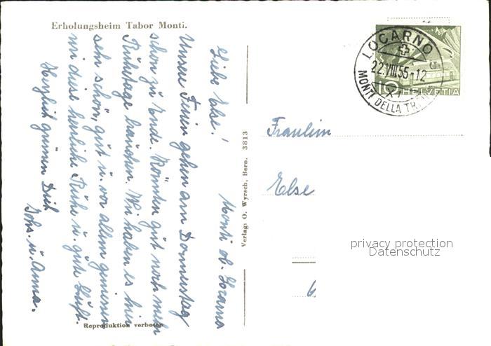 11637058 alte Postkarte Locarno TI Erholungsheim Tabor Monti postalisch gelaufen Erhaltung siehe scans KatCode: 11470210655962
