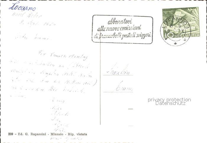 11637077 alte Postkarte Locarno TI Hotel Reber postalisch gelaufen Erhaltung siehe scans KatCode: 11470210655962