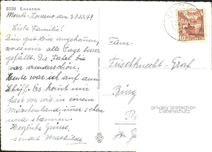 11652861 alte Postkarte Locarno TI Hotel Regina postalisch gelaufen Erhaltung siehe scans KatCode: 11470210655962