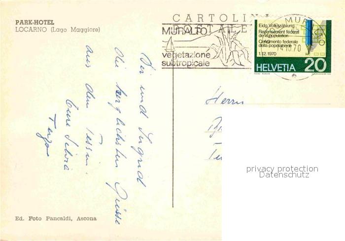 32603934 alte Postkarte Locarno TI Park-Hotel postalisch gelaufen Erhaltung siehe scans [LiesaD40] KatCode: 11470210655962