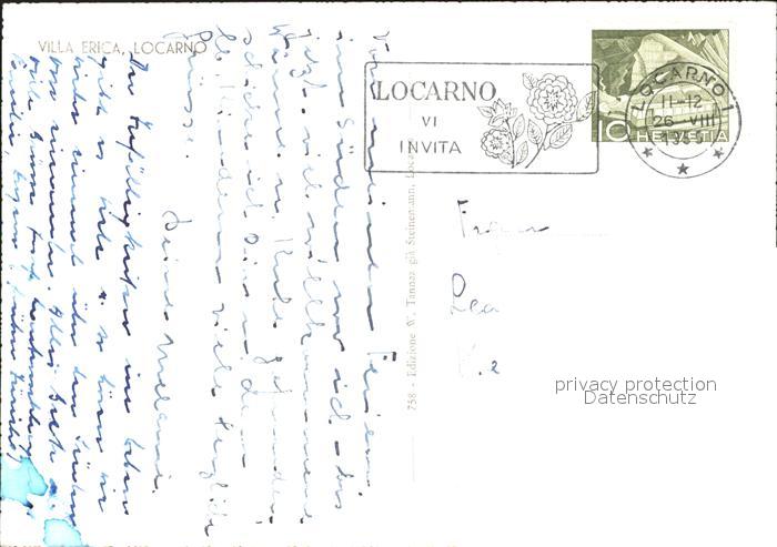 11636994 alte Postkarte Locarno TI Villa Erica postalisch gelaufen Erhaltung siehe scans KatCode: 11470210655962