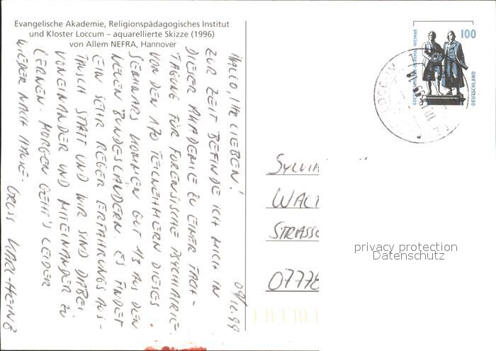 71992157 alte Postkarte Loccum Kloster Skizze vom Allem Nefra postalisch gelaufen KatCode: 11110003256025