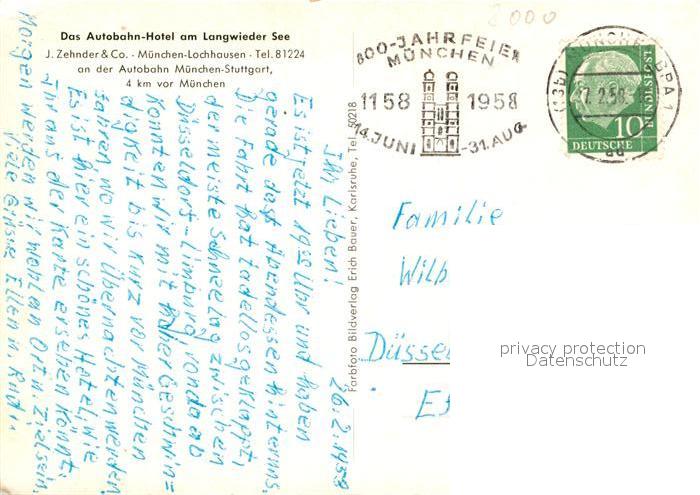 43149884 alte Postkarte Lochhausen Muenchen Autobahn Hotel Langwieder See postalisch gelaufen Erhaltung siehe scans [KathaD81] KatCode: 11110009162000