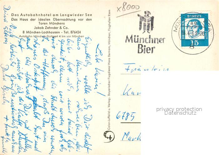 43149477 alte Postkarte Lochhausen Muenchen Fliegeraufnahme Autobahnhotel Langwieder See postalisch gelaufen Erhaltung siehe scans [KathaD81] KatCode: 11110009162000