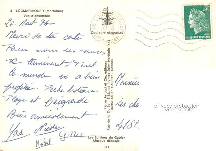 13662352 Locmariaquer Vue d’ensemble aerienne postalisch gelaufen Erhaltung siehe scans [WerneD78] carte postale Wern Katcode 11170056156116