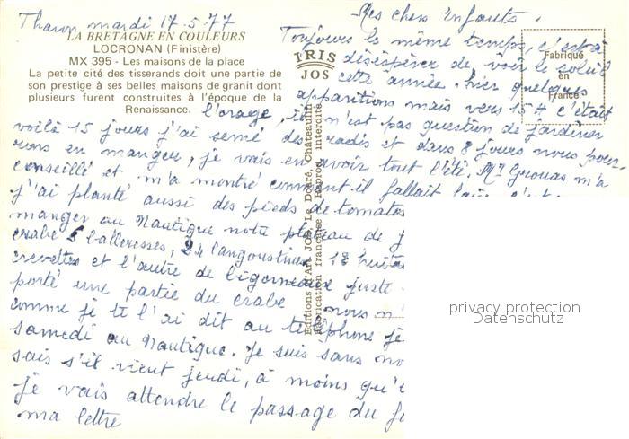13784501 Locronan 29 Finistere Les maisons de la place La petite ite des tisserands doit une partie de son prestige postalisch nicht gelaufen Erhaltung siehe scans [FriedD77] Frie Katcode 11170029229134