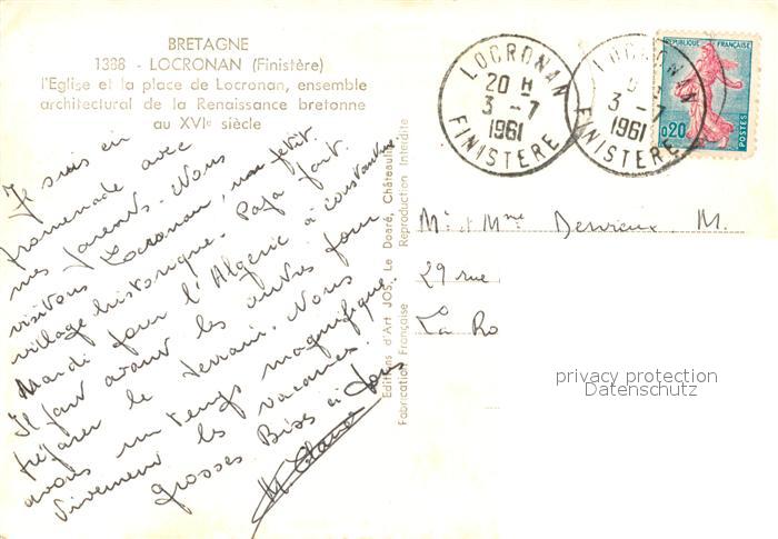 13581978 Locronan Eglise Place Architecture Renaissance bretonne XVIe siècle postalisch gelaufen Erhaltung siehe scans [FriedD77] carte postale Frie Katcode 11170029229134