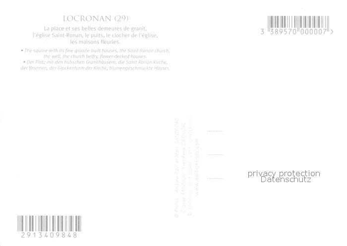 13617440 Locronan La place et ses belles demeures de granit l’eglise Saint Ronan le puits le clocher de l’eglise les maisons fleuries postalisch nicht gelaufen Erhaltung siehe scans [WerneD78] Wern Katcode 11170029229134