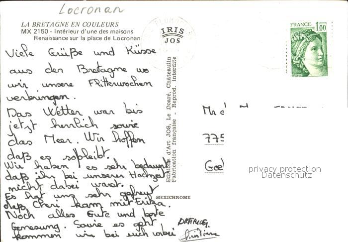 12455968 carte postale Locronan postalisch gelaufen Erhaltung siehe scans KatCode: 11170029229134