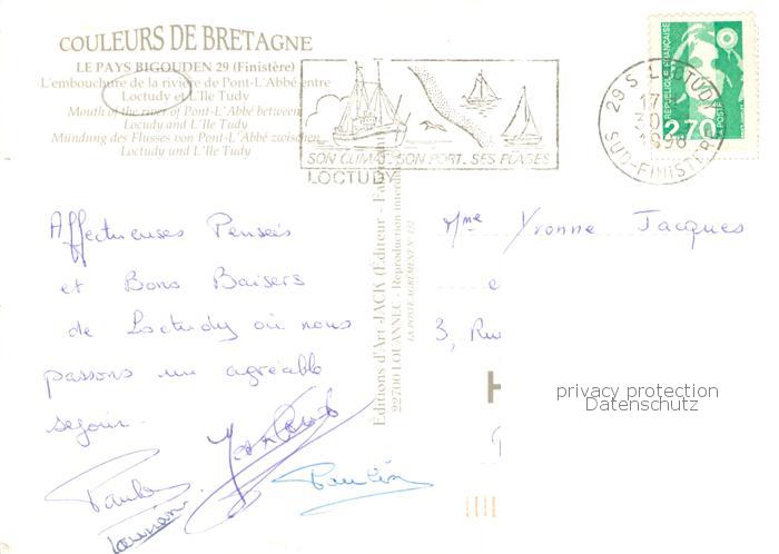 13775439 Loctudy 29 Finistere Fliegeraufnahme Panorama Muendung d. Flusses v. Pont Abby postalisch gelaufen Erhaltung siehe scans [LiesaD40] carte postale Lies Katcode 11170029429135
